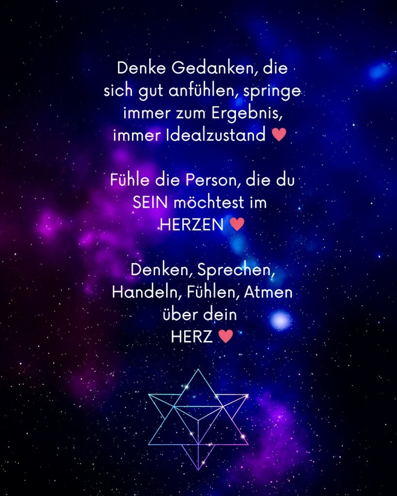 Im Herzen zu sein bedeutet für mich wieder aus mir heraus zu strahlen, zu fühlen und im absoluten Bewußtsein zu leben.